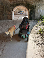 The first thing that we saw other than the brick structure itself were the cannons. At first I did not think I would have access to get up close, but if you keep going you can find the path that circles back to allow you to get up close to explore the cannons. There are a few places with stairs that you cannot go up. I found it interesting that they had long passageways that they filled with gun powder so they could blow it up to destroy one side of the fort if needed. The fort shared about its history, even the parts that they are not proud of. It talked about holding Geronimo there away from his homeland and everything that he knew. They also talked about the slaves building the fort and the slave owners being paid for their work. The history is important to understand so we can learn from it. The main location had a gift shop where you can get your National Parks stamps and souvenirs. They had up to date bathroom, water fountains, and even a dog watering fountain. Their was a museum and a few older buildings that were not wheelchair accessible. They had a ramped dock that led out to the water that Tibbs and I enjoyed walking and exploring on. They had several other locations that you can use the app to learn about and make stops along the way out of the park. It was very hot with lots of asphalt so make sure to have water and a bowl, dog shoes and mushers cream. As this was our last day in the area we took our time to enjoy then started off on our journey home.